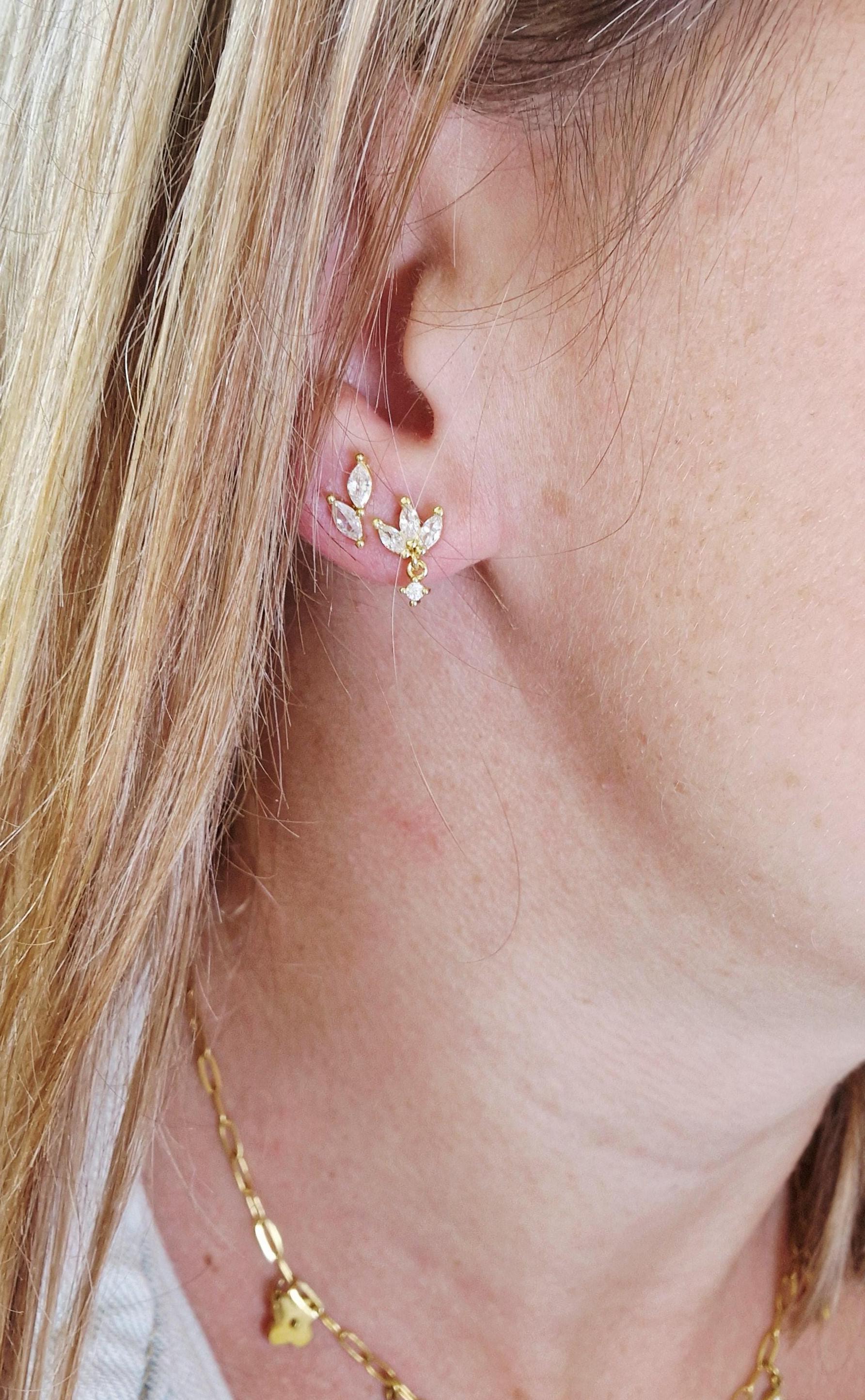 Pierre : Zircons transparents facettés Style : Floral / pendantes fines Couleur : Doré et cristal