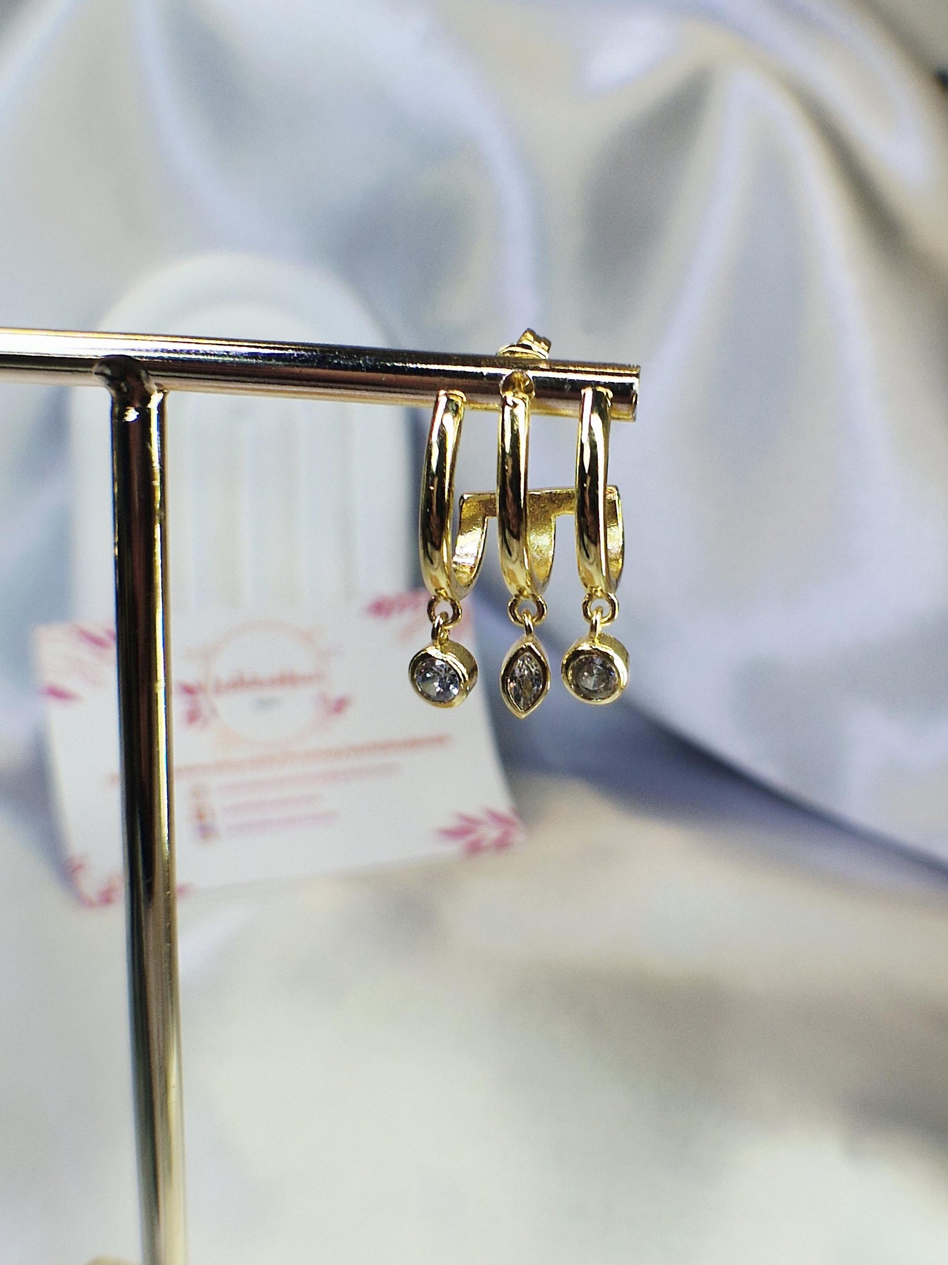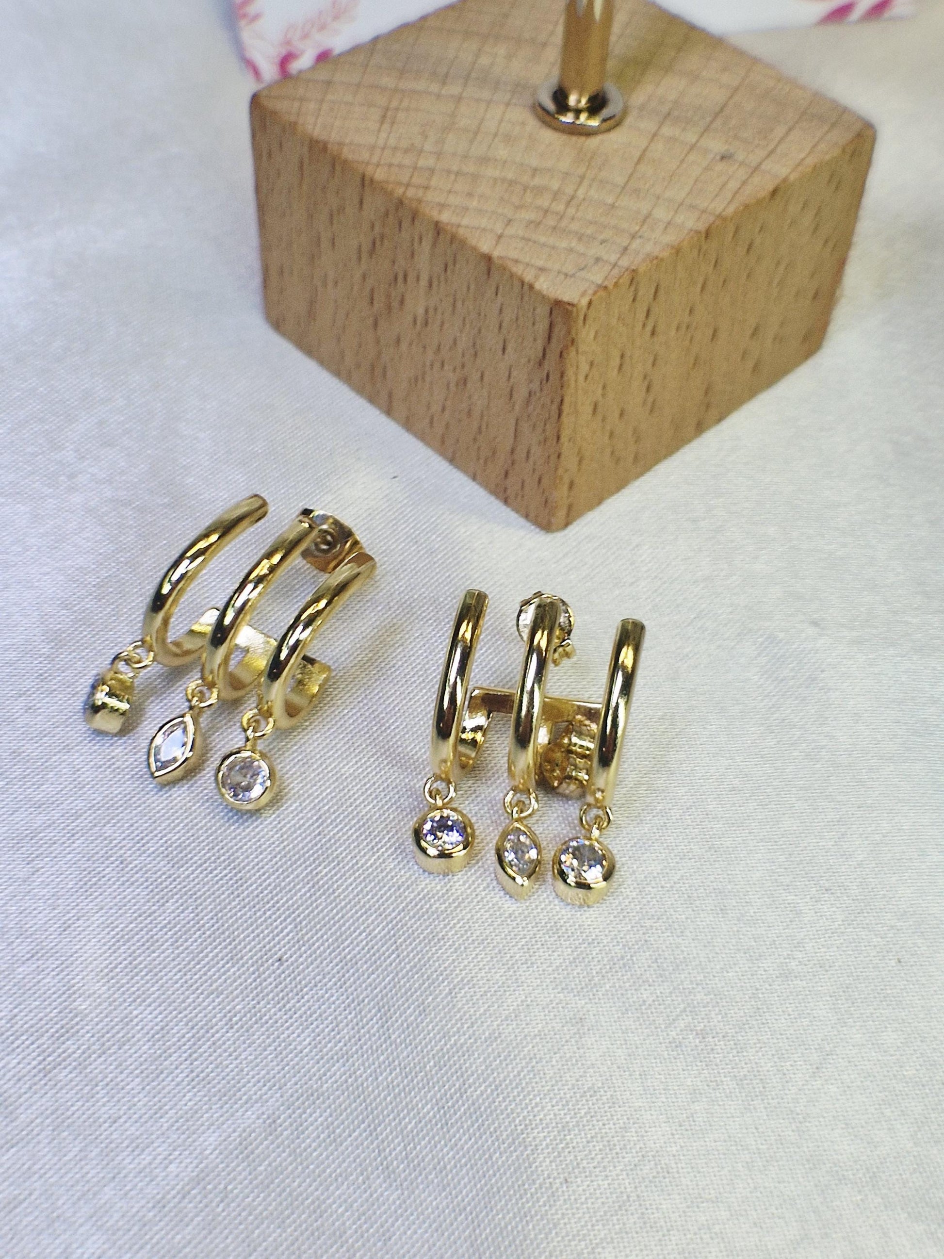 💎 Détails du bijou : Matériau : Acier inoxydable doré (hypoallergénique, résistant à l’eau, ne ternit pas) Ornements : Zircons transparents facettés Fermoir : poussettes sécurisées Poids : légères et confortables