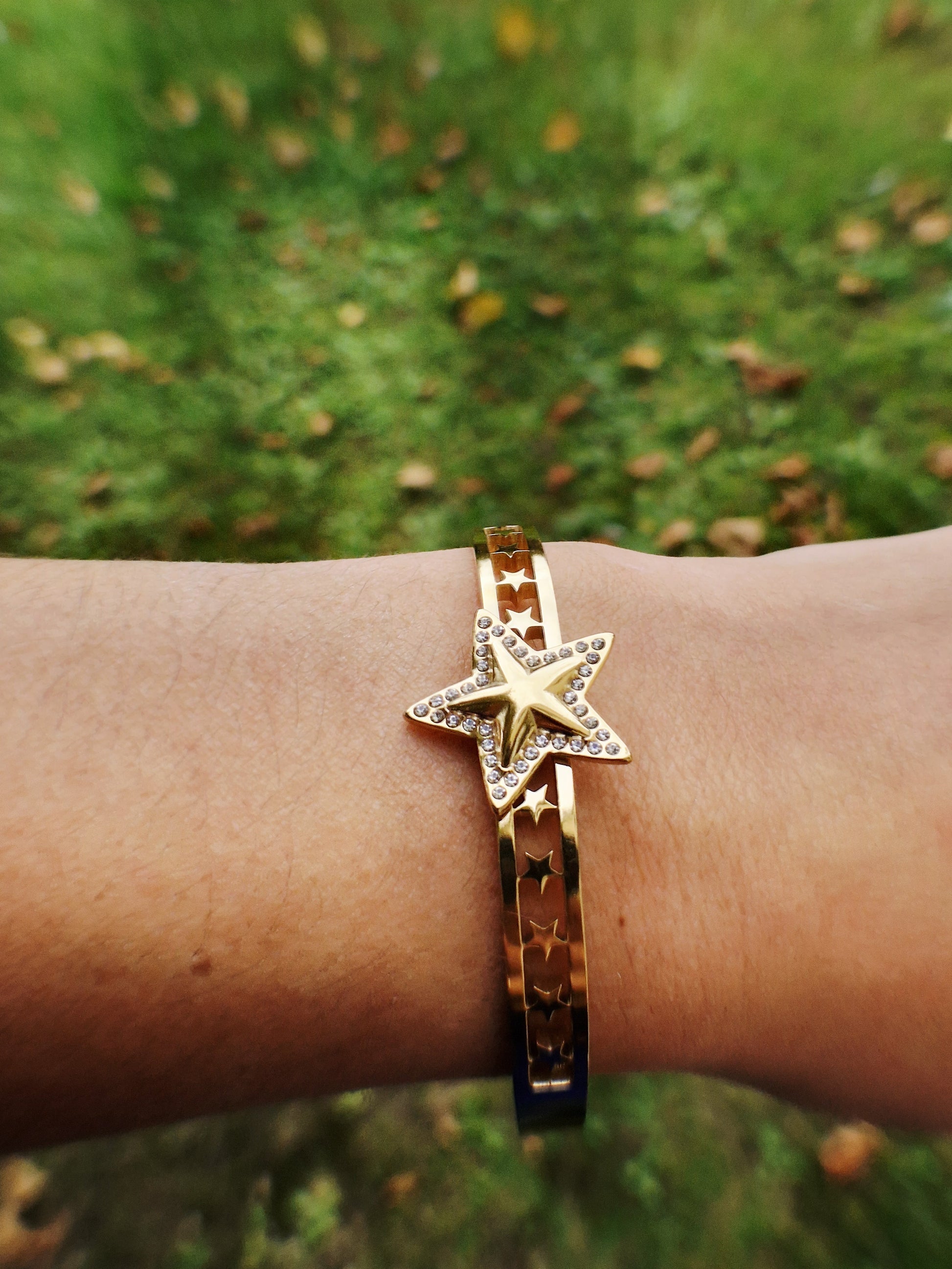 Sa superbe étoile centrale ornée de strass brille de mille feux, tandis que les découpes en forme d’étoiles sur le bracelet ajoutent une touche d’élégance et d’originalité.